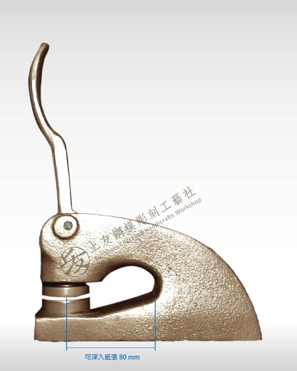 「桌上型鋼印B」的優點就是結構堅固,可以印壓在較厚的紙張上,而且可入紙深度 8公分